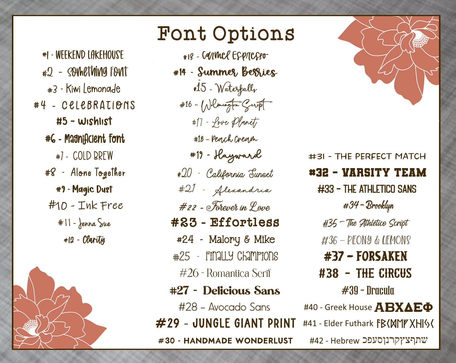 • Name(s) or message on front, 15 characters max (counting spaces & punctuation)