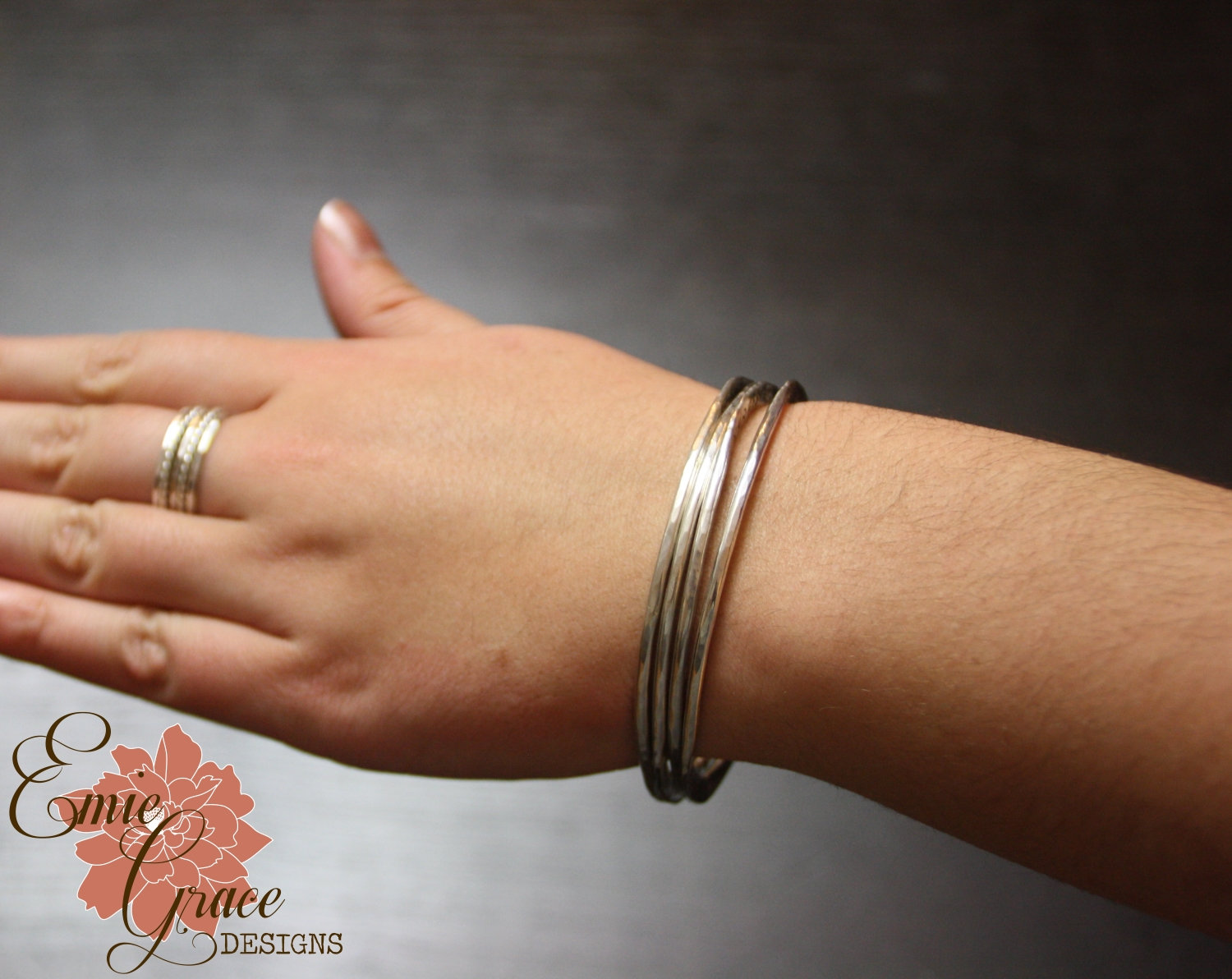 The hammered feature of the bangles are appealing and the engraving came out nicely. I feel the product is a bit over-priced. Silver is trading higher right now.
